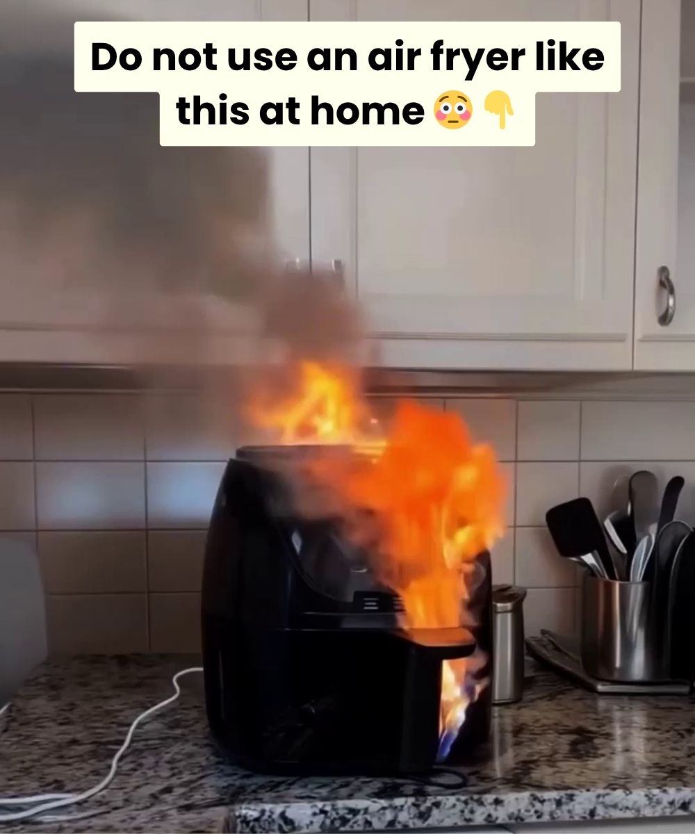 Many people try to save kitchen space by keeping the air fryer inside a cabinet or shelf—even while cooking. This is extremely dangerous. Air fryers need proper ventilation to release hot air. Using one in a closed environment traps heat and steam, increasing the risk of overheating and electrical failure.